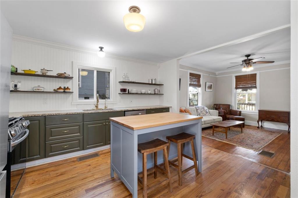 Located in East Points' historic Center Park, this charming bungalow offers one level living at its best! It's perfectly designed for easy, casual and fun living, comfort; both inside and out and the location is perfect. The updated kitchen and baths, original hardwood floors, natural light, and rear deck make this a perfect home for first time buyers or investors. The living room features a wood burning fireplace with views of the kitchen and the bedrooms are sizeable and positioned perfectly for a housemate or guest. The backyard is fenced and there is off-street parking as well. With easy access to in-town Atlanta, MARTA's East Point Station, Tyler Perry Studios, Porsche Experience Center, Woodward Academy and a short drive to Atlanta Hartsfield-Jackson International Airport and Delta Airlines Headquarters, you're square in the middle of location, location, location. Welcome Home! This is by far the most adorable bungalow I've seen in quite some time. It oozes charm and awaits a new owner.