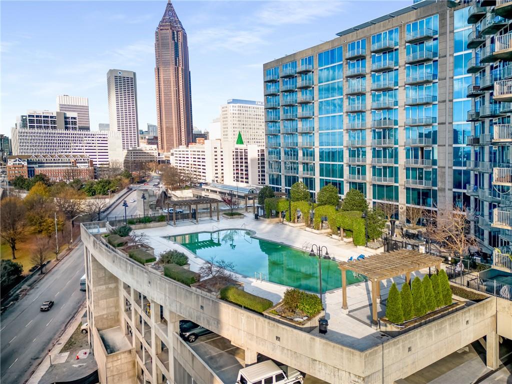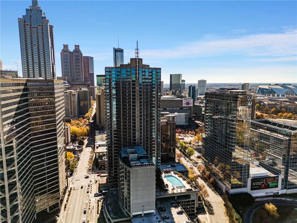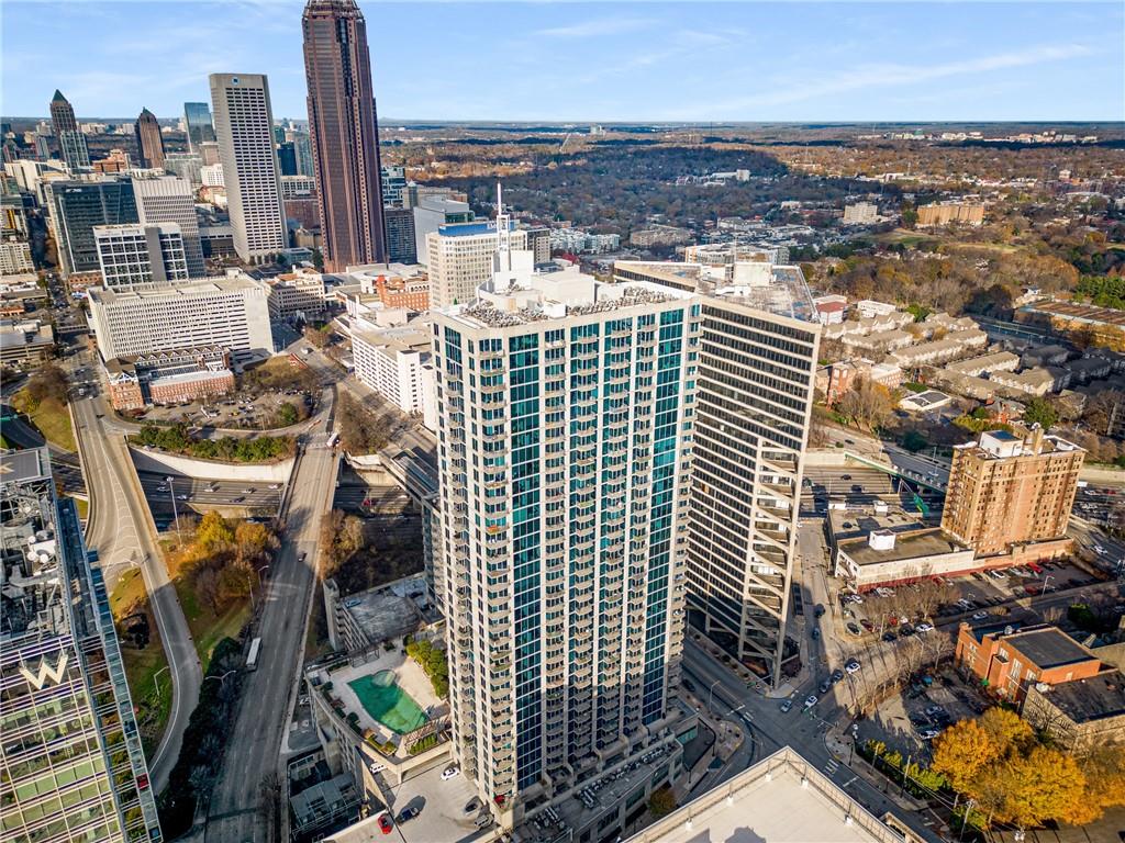 Spacious 2-bedroom high-rise condominium just two blocks south of North Avenue, offering prime access to major highways and only 150 feet from MARTA. This stunning unit features a desirable roommate floorplan, with each bedroom boasting its own private bath and updated closet organizers. The modern kitchen is equipped with granite countertops and stainless-steel appliances, complemented by beautiful hardwood floors. Enjoy peace of mind knowing the owners have diligently maintained the property, including the recent replacement of the heating and air conditioning unit in 2025. Take in breathtaking, unobstructed northwest views from the 32nd floor of Midtown, Downtown, and Georgia Tech. Residents can enjoy luxury hotel-style amenities, including an onsite gym, a saltwater pool, and a restaurant and bar with room service. Conveniently located near Mercedes-Benz Stadium, State Farm Arena, Piedmont Park, and a variety of top-rated restaurants.